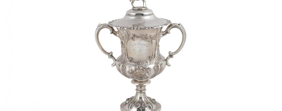 An antique lidded English sterling silver trophy (lot 385) entitled “The Cavalry Cup”, attributed to Melbourne silversmith William Edwards and manufactured circa 1856 by London’s Samuel Hayne and Dudley Carter, is a shining example of items to be found in the Australiana Fund Collection, some 30 of which are on offer at this auction.