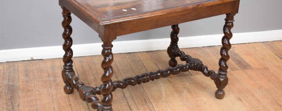 Among the furniture is a pair of decorative French serpentine fronted marble top commodes, an 18th century French Henry II style oak table and a French continental style parquetry top extension dining table.