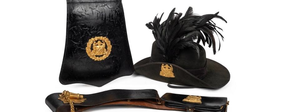 Several items belonging to Major Robert Hamilton Lindsay 1st Australian Light Horse – including slouch hat with plume, sabretache cross-belt and pouch (lot 859) are other strong attractions.