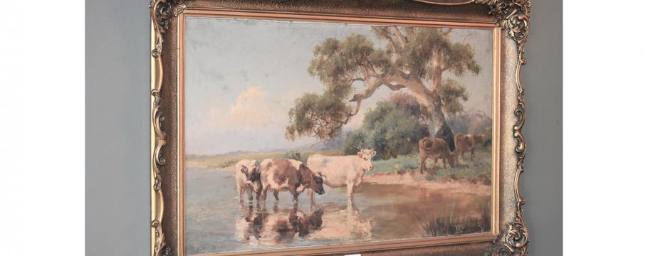 Auction goers will have a good selection of Australian paintings from which to choose including works by Ernest Buckmaster, J.H. Scheltema, Follen Bishop, David Boyd, John Olsen, Hugh Sawrey, David Bromley, Pro Hart and Sidney Nolan.