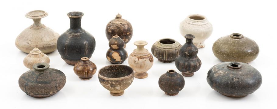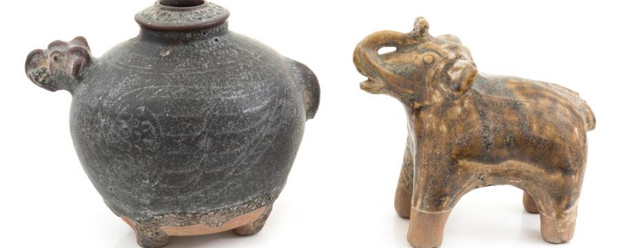 Typical of the items up for grabs are 15 small circa 11th century Khmer vessels, and a Thai elephant lime pot with a Thai elephant.