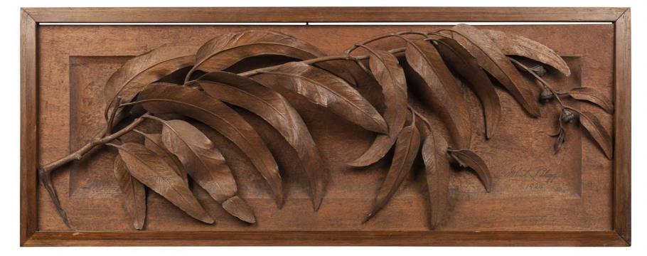 Australiana is at its peak with John Kendrick Blogg’s stunning 1924 signed and dated panel depicting a eucalyptus branch carved in high relief (lot 169) and listed at $40,000-$60,000.