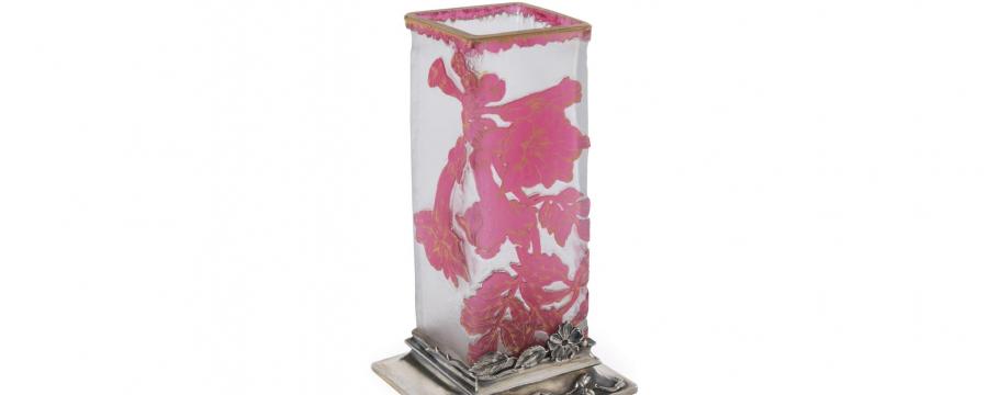 A Daum cameo glass vase with French silver mount and gilt rim (lot 223) would complement any collection, according to auctioneer Charles Leski – as would an impressive antique coromandel and satinwood games box (lot 263).