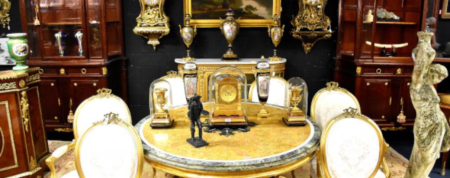 Other auction furniture includes a pair of French plum pudding mahogany bookcases, carved giltwood salon pieces and giltwood mirrors.