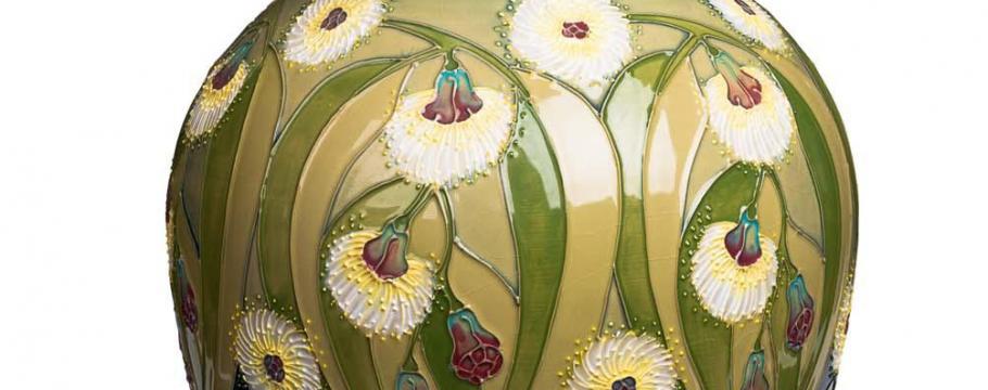 Another strong collector attraction is the large Moorcroft Tasmanian blue gum vase circa 1993 (estimate $15,000-$25,000 – lot 81) and its companion lot 80 manufactured a year earlier.