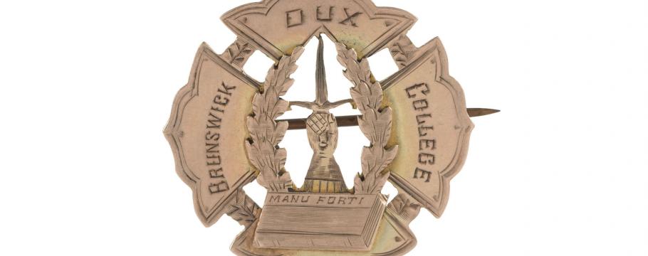 Unusual is an education award in the form a nine-carat gold badge (lot 167) engraved with the words “Brunswick College Dux 1922” and on the back “Violet I.H Kent”. History does not record what happened to Violet.
