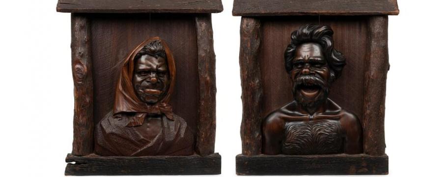 A pair of carved timber portrait panels featuring an Aboriginal man and woman with headscarf dated 1918 (lot 55) by famous Australian sculptor Robert Prenzel (1866-1941) is among the highlights of Gibson’s Auctions two-day Australian, Maritime and Natural History sale, live from 12pm Sunday August 28 and continuing the next day as a timed online auction closing from 10am, at 885-889 High Street, Armadale.