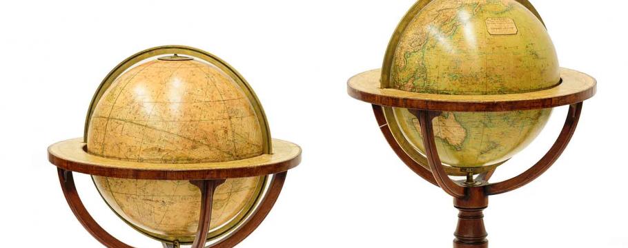 A matched pair of 1818 terrestrial and celestial library globes on stands by English makers J&W Newton (estimate $28,000-$32,000) is another auction drawcard.
