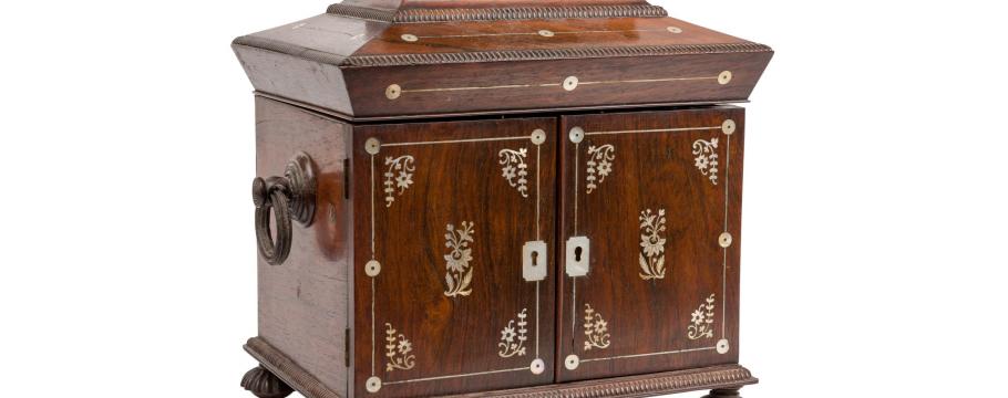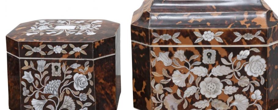 Tea caddies are another fascinating part of the collection including lot 156 – two early 19th century tortoiseshell versions.