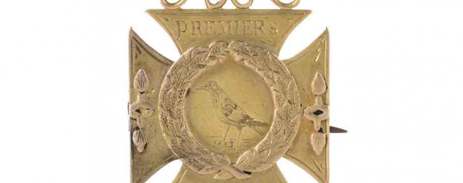 The 15-carat gold 1896 premiership medal (lot 386) awarded to Collingwood captain William ‘Bill’ Strickland, which has been in the family ever since, will be auctioned for the first time, along with other items from his estate including a gold pocket watch (lot 390).