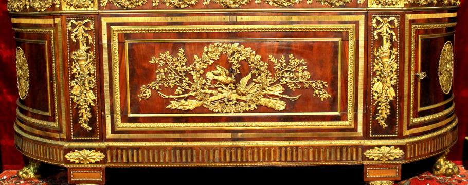 A rare signed antique Italian harp with bronze mounts should attract plenty of attention along with a highly important exhibition commode of palatial proportions.