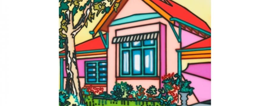 There are several works that should have no trouble attracting attention including Howard Arkley’s (1951-1999) Eastern Suburbs Pink Home 1991 (lot 4), featuring the artist’s singular fascination with the suburban home.