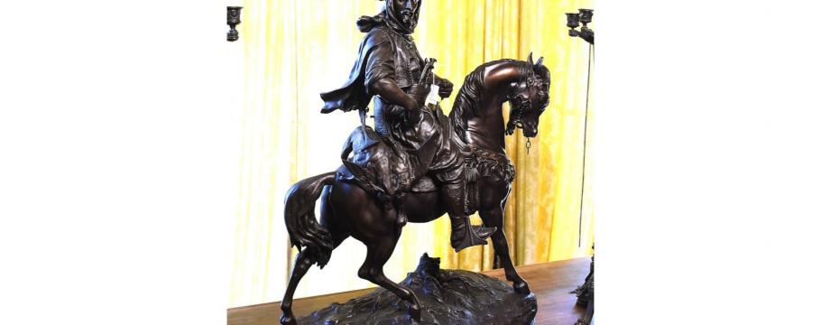 Fantastic bronze figures include a large spelter group of Arabian horsemen Ele Guilamane (lot 20) and a finely detailed 19th century French gilt bronze and ivory figure of a smiling maiden (lot 105) by French-Polish sculptor Paul Philippe (1870-1930).