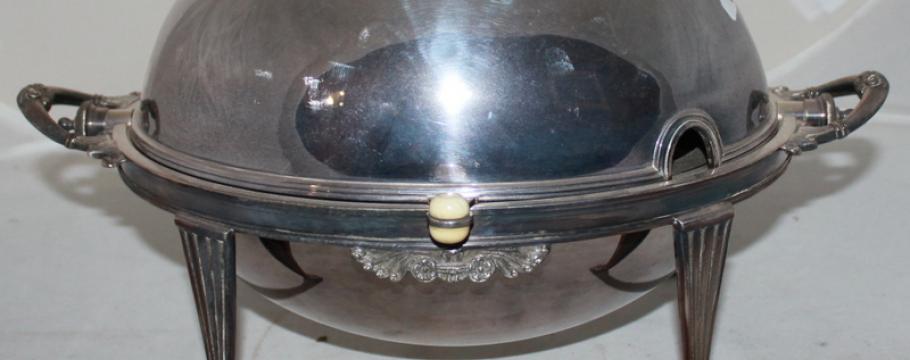 Silver highlights include Walker & Hall Sheffield lidded bacon dish and a James Dixon plate silver tea and coffee service.