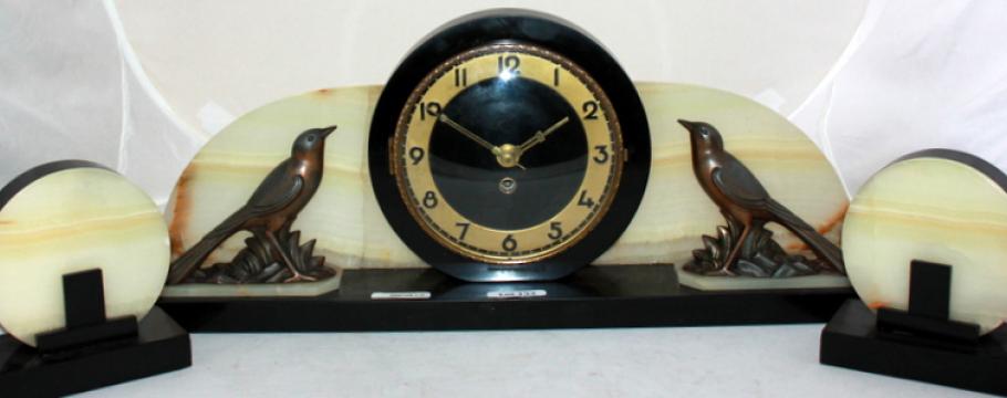 Unusual is the French art deco three-piece clock set, the Victorian oak doctors travelling compendium and the retro chrome five branch light fitting.
