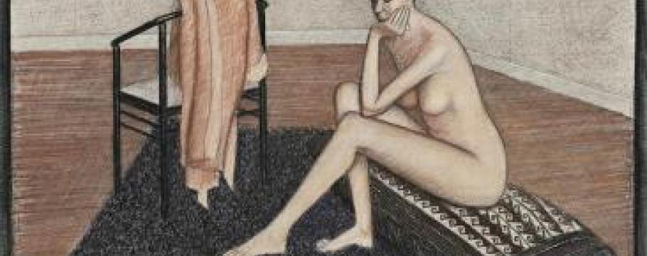 Other paintings include Fred Williams Landscape (The Charcoal Burner), 1959, John Brack’s Nude with Purple Rug, 1985, Roy de Maistre’s The Beach, 1924, Grace Cossington-Smith’s Sofa in the Corner, 1962 and William Robinson’s Morning Springbrook and West, 1995.
