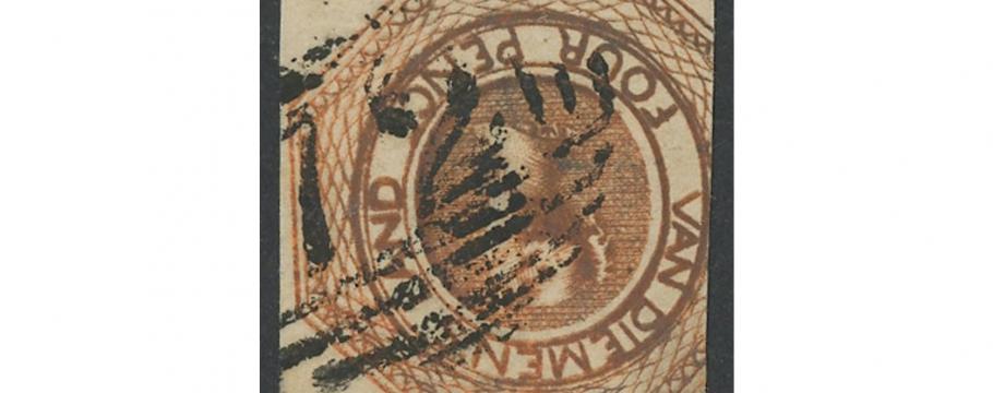 Brown’s Norfolk postal history includes 1777 and 1792 maps of the island (lots 3437 and 3438), a circa 1854 Tasmanian stamp used at the colony (lot 3441) and letters dating back to 1891.
