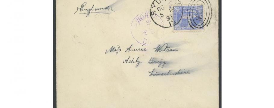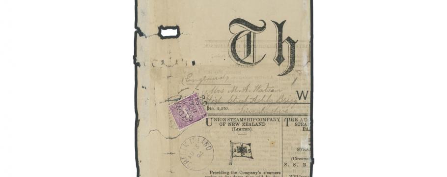 A Mrs Annie Watson from Lincolnshire features prominently in the Norfolk postal history with two rare letters (lots 3442 and 3443) and a large piece dated June 16, 1894 from the Fiji Times (lot 3444) – the only known pre-20th century usage of a newspaper from the island.