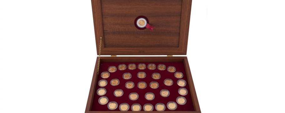The sovereigns include a complete collection (lot 52) of those struck at the Perth Mint from 1899 to 1931 and comprise 33 22-carat gold coins and one 1899-1999 $100 centenary sovereign proof, all in a luxurious jarrah timber presentation case.