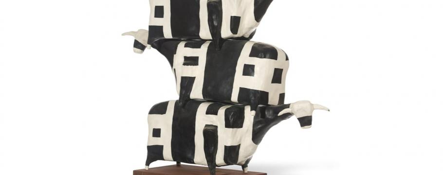 Other artist works to feature in the auction include John Kelly’s Three Cows Stacked 2001, Ian Fairweather’s Fascismo 1963, Sidney Nolan’s Burke and Camel c1966, Charles Blackman’s School Children at Play 1953, Garry Shead’s Queen and Royal Procession II 1997 and Rover Thomas (Julama)’s Cyclone Tracey – Willy Willy 1995.