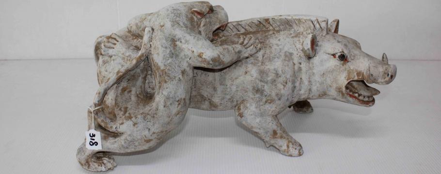 Collectors will be out in force at this sale – firstly for the rare 19th century 18-centimtere high Tibetan gilt seated Quang Ying figure from the Qing Dynasty and secondly for the Tang Dynasty (618-907AD) pottery group of a snow lion leopard attacking a wild boar.