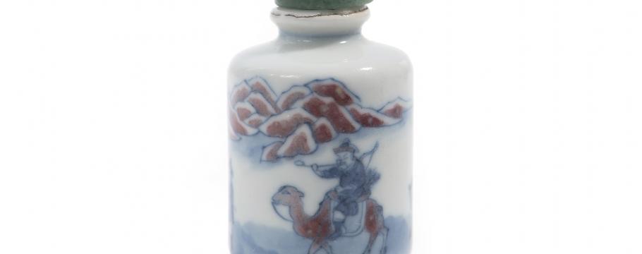 The auction features a selection of 18th and 19th century Chinese snuff bottles including one that depicts hunters in a mountainous landscape and another a writhing dragon (lot 44).
