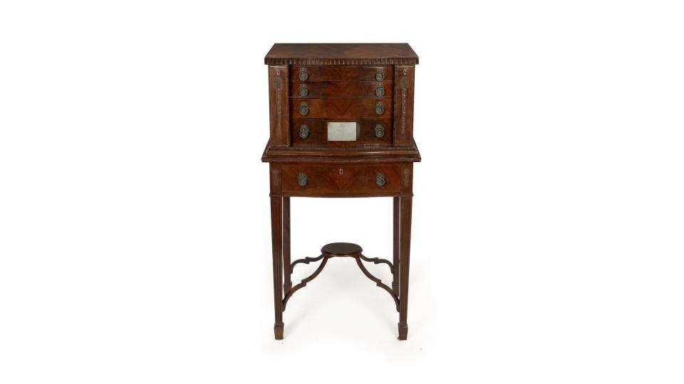 Another successful outcome was the $6500 paid for Albert Percy “Tich” Freeman’s (1888-1965) sterling silver presentation cutlery set in a Chippendale Revival mahogany four drawer canteen on a matching stand (lot 116).