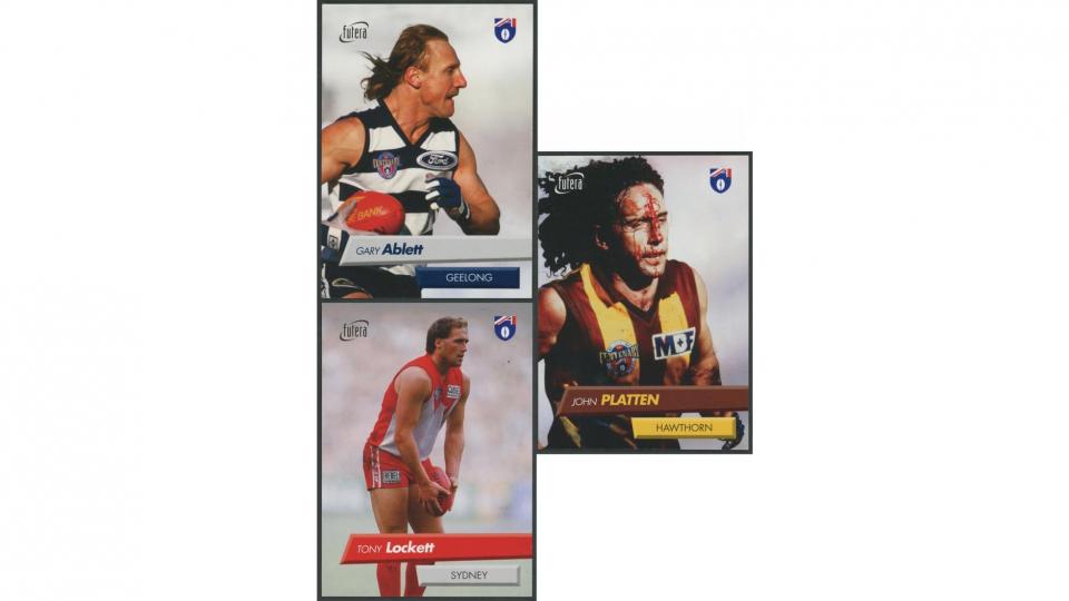 A 1926 Australian Test team framed photo (lot 3580) including all the greats from that era sold for $4600, and lot 3818 – a 1997 set of Futera footballers, showcasing legendary champions Gary Ablett Sr, John Platten and Tony Locket, brought $4200.